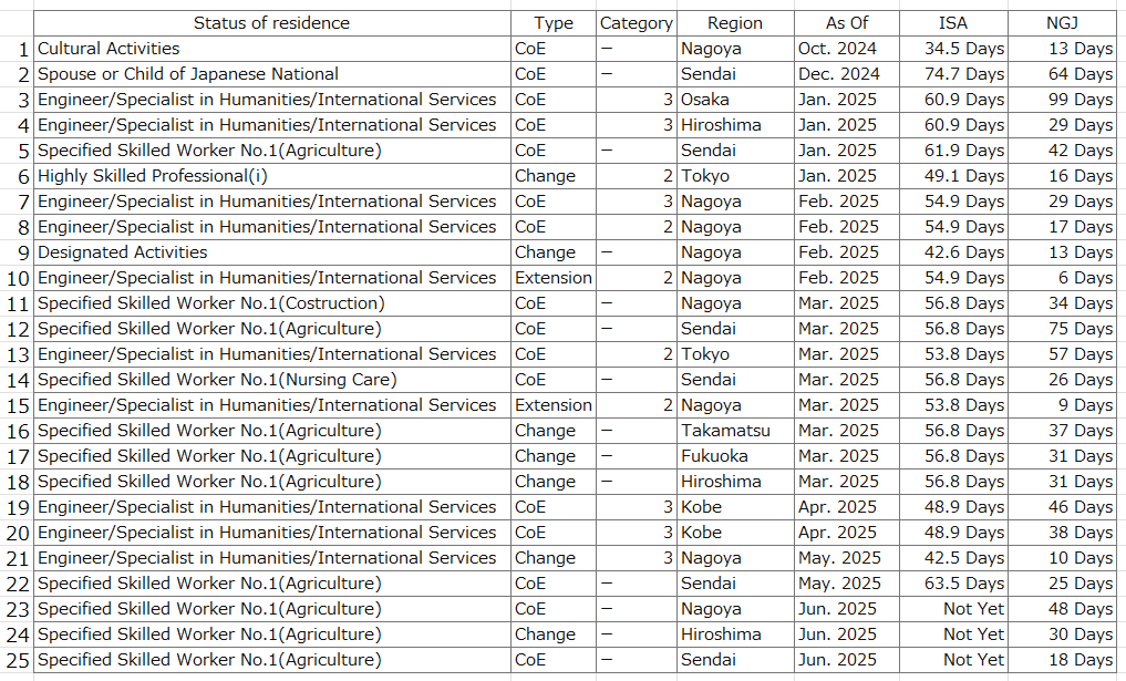 Yesterday, the Immigration Services Agency of Japan announced the period for processing residence examinations for May 2025.