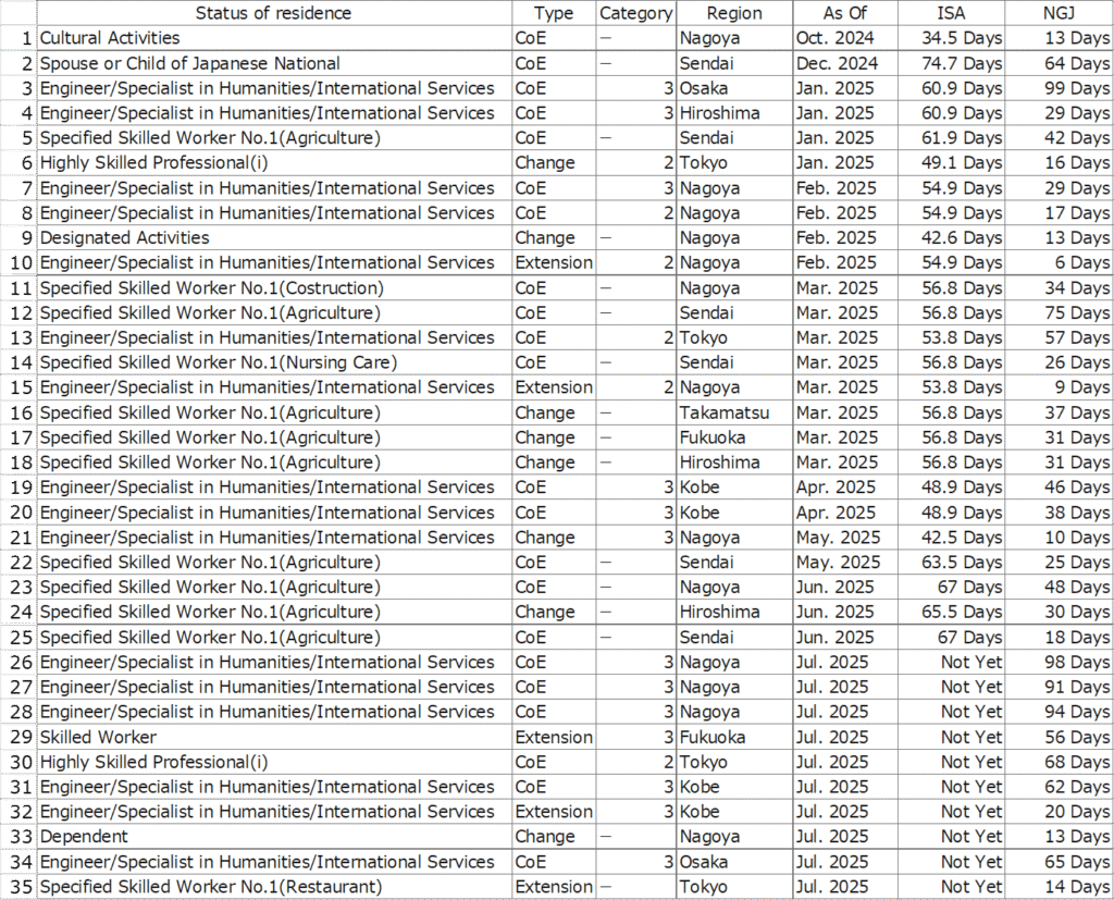 Yesterday, the Immigration Services Agency of Japan announced the period for processing residence examinations for June 2025.