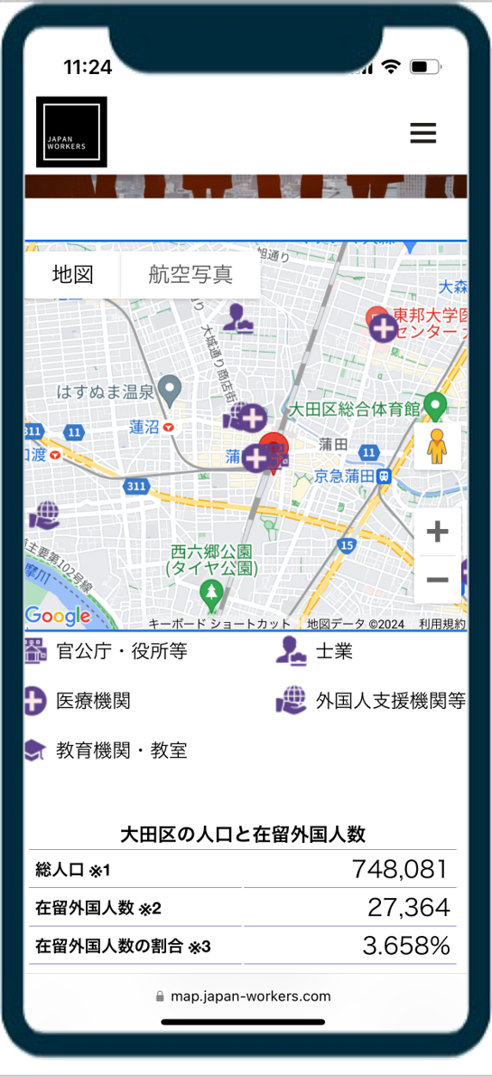 ![]() ![]() Useful Map for Foreign Residents for Ota ward, Tokyo | The “Useful Map for Foreign Residents” provides information for foreign nationals working or residing in Japan, such as government offices, administrative scriveners who support residence applications, specified skill registration support organizations, medical institutions, etc. We mainly list institutions that are essential and useful for working and living in Japan. |